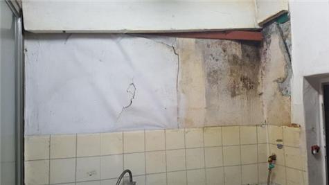 기존의 싱크대를 들어내고 습기와 곰팡이가 끼어있던 벽지를 새것으로 교체하여 싱크대를 재설치하였습니다. 위생적으로 깔끔한 환경에서 주방을 이용할 수 있게 되었습니다.