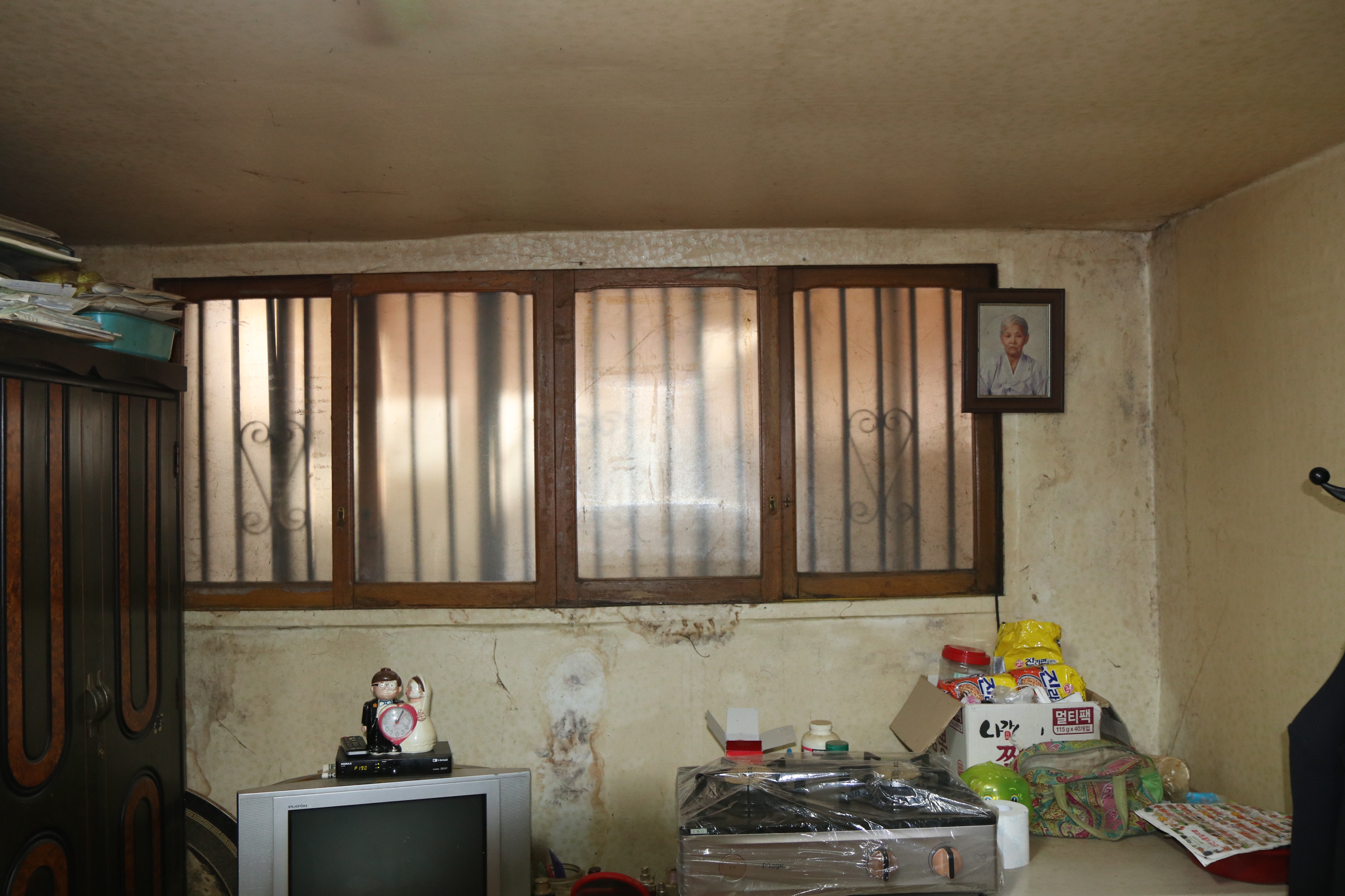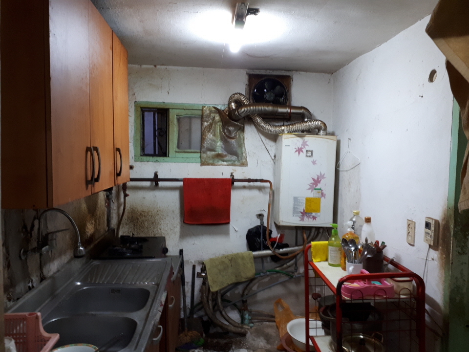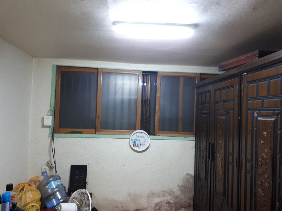 대상자 김석민(가명)님은 안구 시신경 마비로 시력의 95%를 보지 못하고 폐질환으로 인하여 30M만 걸어도 숨이 가빠와 외부활동을 전혀 하지 못하고 있으셨습니다. 하지만 지층에 위치한 집은 청소와 관리가 되지 않아 청결하지 못했고 특히 공기가 많이 탁했습니다. 낡은 창문 벽면은 방수에 취약하여 비가오면 다시 빗물이 집안으로 고여들 수 밖에 없는 구조이기 때문입니다. 자연스럽게 거동이 불편한 김석민(가명)님은 습기로 눅눅한 집 안에서 탁한 공기를 마시며 폐질환이 더 악화될 수 밖에 없는 상황이었습니다.