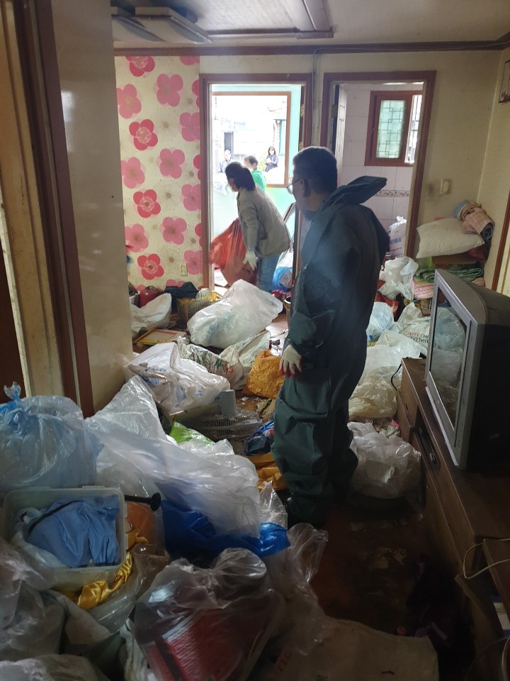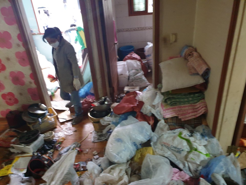 ?거주자의 집은 악취와 벌레로 동층에 위치한 어린이집과 이웃에서 장기간 지속적인 민원이 제기되고 있었습니다. 거주자의 힘겨운 상황을 확인한 해피기버는 지원을 약속하여 폐기물 처리를 결심하게 되었습니다.