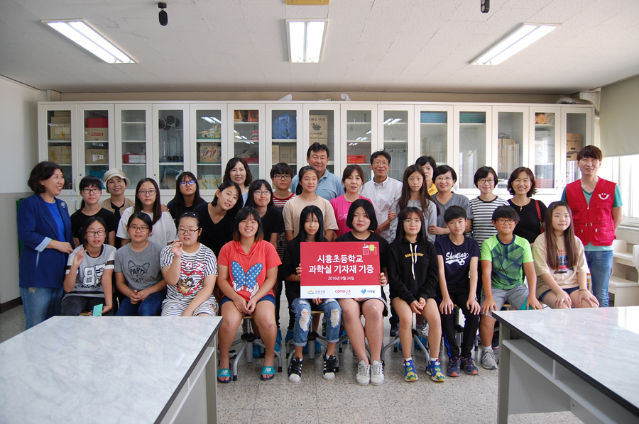 컴투스에서 시흥초등학교 학생들을 위해 과학실 기자재 지원낡은 과학실의 실험대 및 의자를 모두 교체