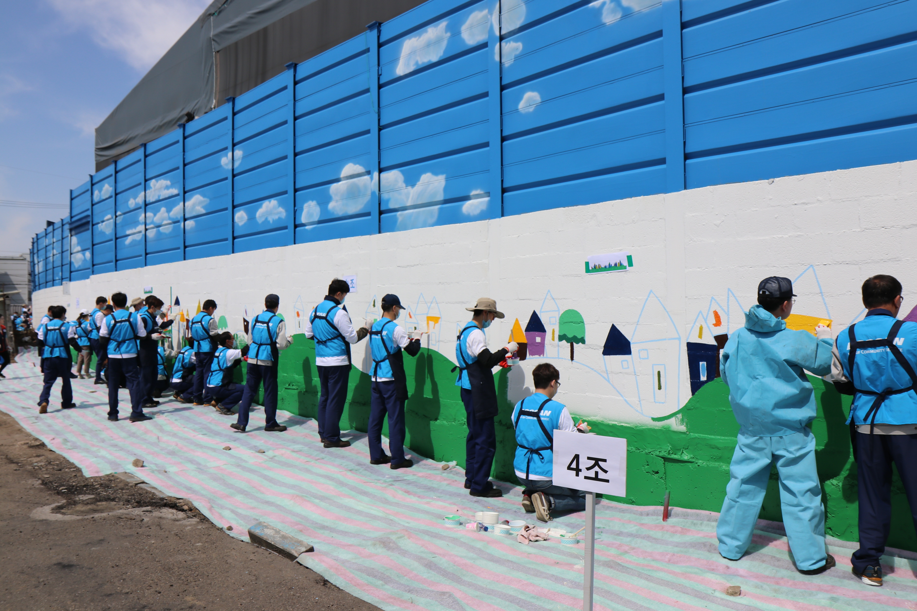 두산인프라코어 임직원이 쪽방촌 새뜰마을 노후거리 환경개선 봉사활동에 참여하여, 낡은 거리를 깔끔하고 산뜻하게 바꾸었습니다.