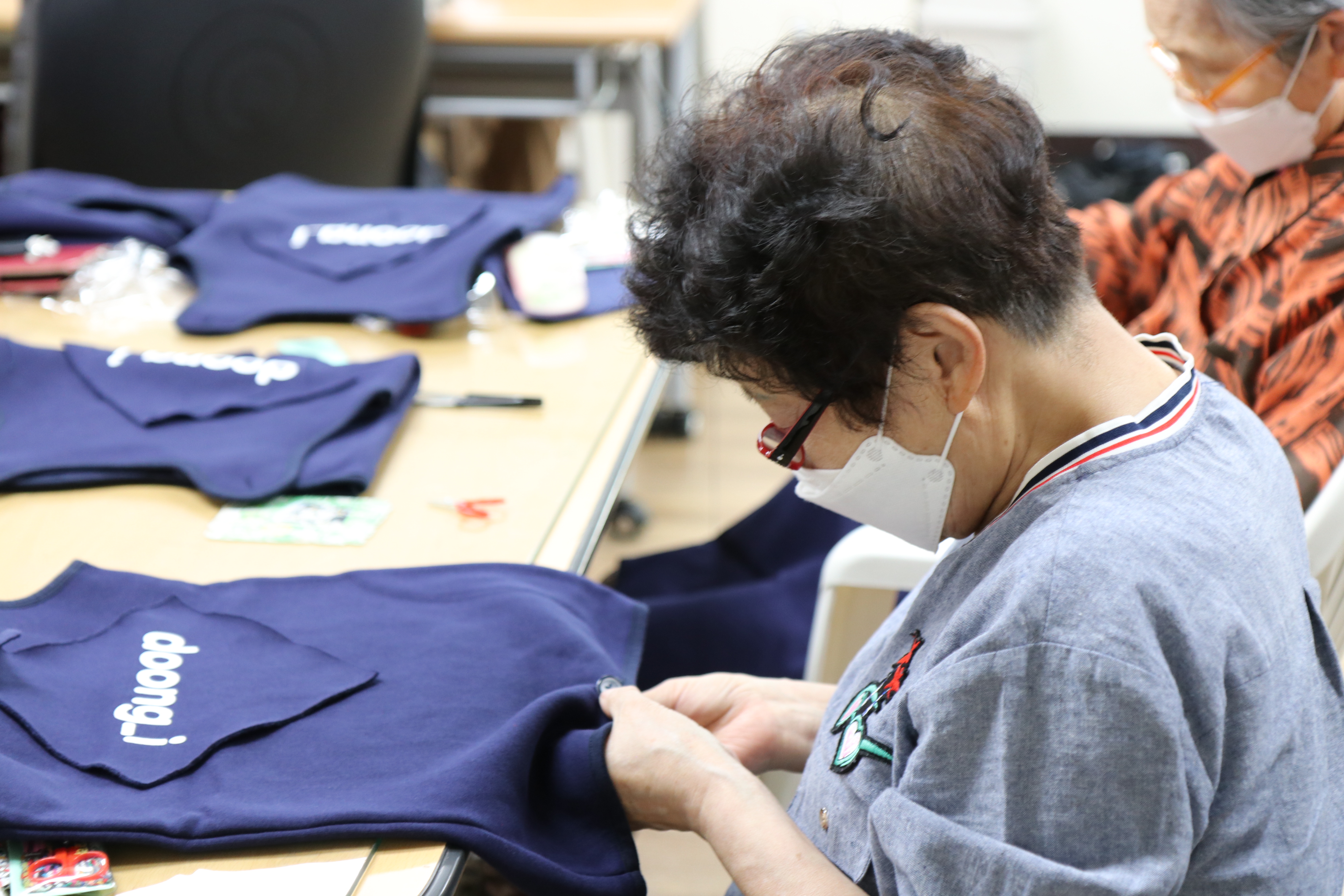 미혼모분들의 아기를 위한 보훈원 어르신들의 재능기부! 어르신분들이 직접참여하여 아기들이 입을 수면 조끼를 만들었습니다.