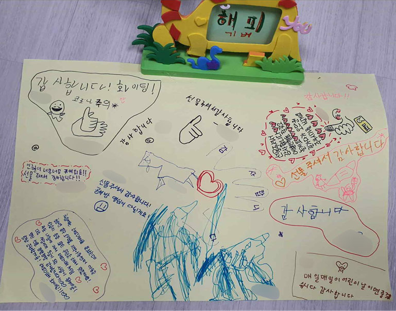 아이들은 해피기버에 ‘매일매일이 어린이 날이었으면 좋겠습니다. 슬라임이 갖고 싶었는데