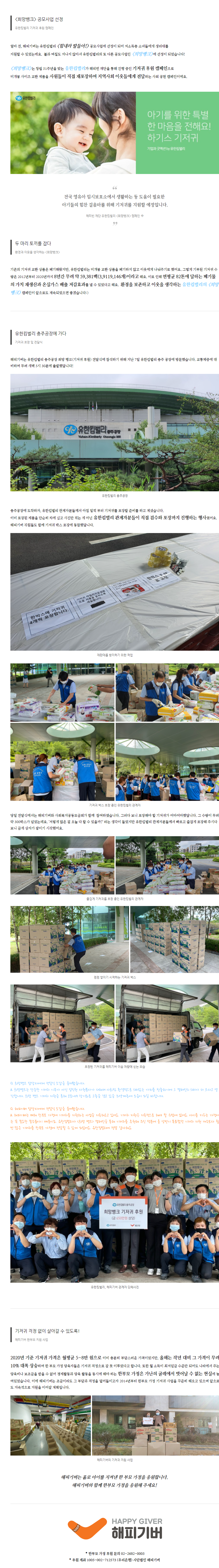 [사회공헌] 유한킴벌리X해피기버 ‘희망뱅크‘ 선정 후기