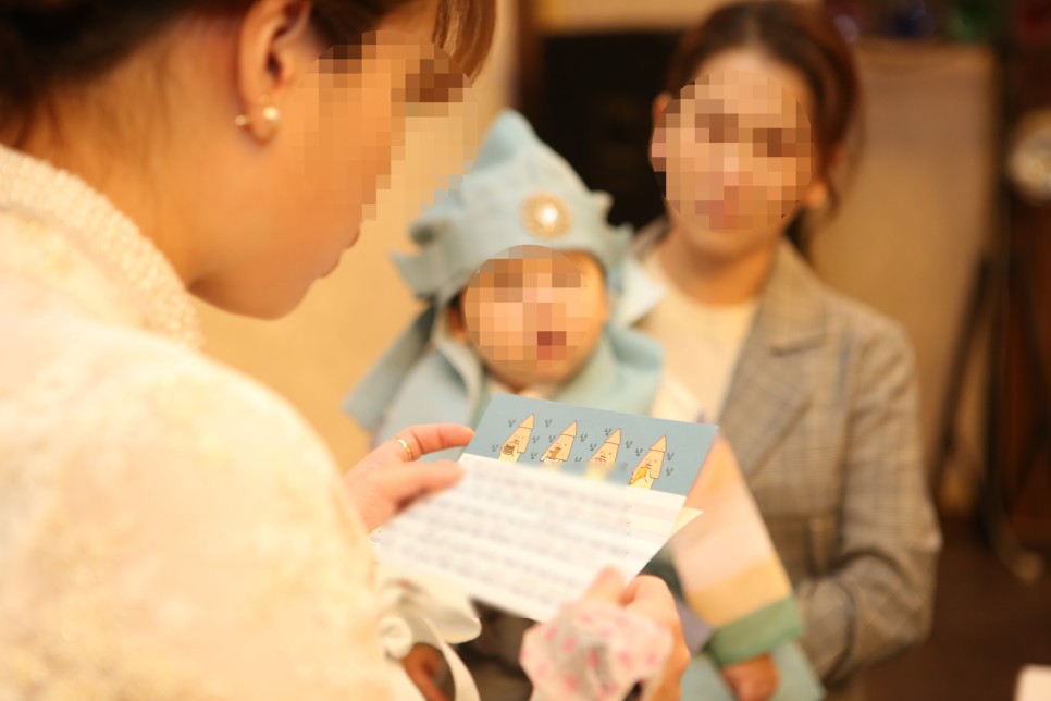 돌잔치의 마지막 순서는 태은이에게 보내는 엄마의 편지 낭송이었습니다. "사랑하는 태은이에게.." 운을 떼자마자 수현씨의 눈시울이 불어졌습니다. 꾹꾹 참고 편지를 읽어보려 했지만 결국 참았던 눈물을 보이고 말았습니다.