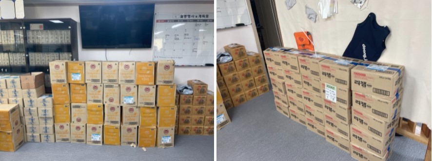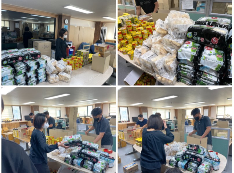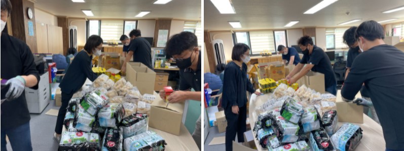 월요일 아침, 사무실에 도착해 보니 물품들이 한가득 쌓여있어 발을 디딜 틈이 없었습니다. 코로나19로 당일 직접 전달이 어려워 나물이나 송편을 전달하지 못하는 아쉬운 마음에 우리나라의 정서를 느낄 수 있는 한과들도 함께 준비해 보았는데요. 우리나라의 명절 느낌 팍팍 나지 않나요? 전 부치는데 필요한 식용유도 필수죠!