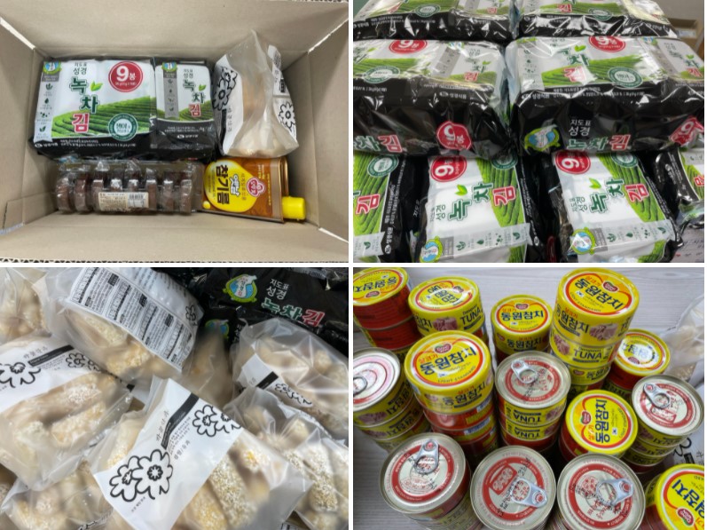 △ 선물 꾸러미 구성 품목 : 김, 한과(약과,유과), 참치, 통조림 햄, 참기름, 식용유