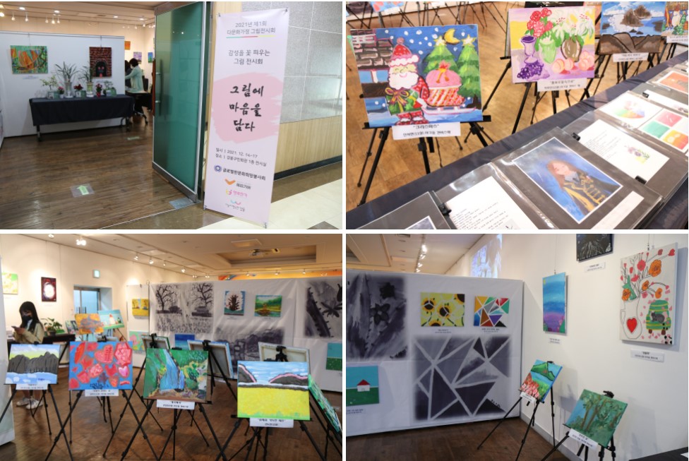지난 14일 화요일 서울시 강동구민회관 1층에서는 작은 전시회가 열렸습니다. 글로벌한문화희망봉사회가 주관하는 이번 전시회는 다문화가정센터가 최초로 주관하는 열린 전시회로 해피기버와 사단법인 행복한가 그리고 그밖에 많은 분들의 도움으로 열릴 수 있었습니다.