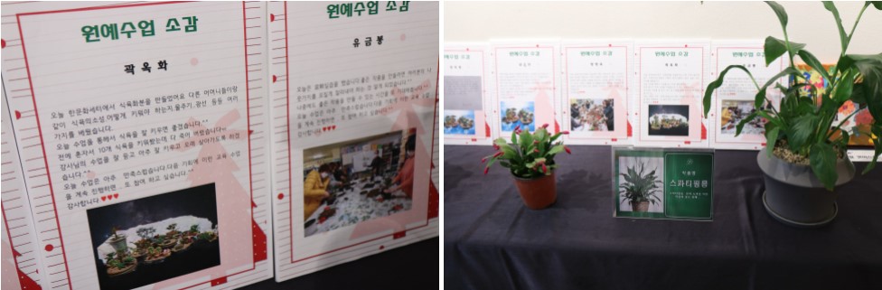 이날 전시회에는 그림뿐만 아니라 아이들이 원예교육을 통해 직접 만든 화분도 함께 전시되어 다소 어두울 뻔했던 전시회장이 아주 밝아졌는데요. 글로벌한문화센터에서는 정기적인 원예 수업을 통해 직접 화분을 만들고 식물 키우는 방법 등을 교육한다고 합니다. 그 외에도 벽화 그리기, 봉사활동 등 다양한 활동을 해왔는데요. 코로나19로 대부분의 프로그램들이 취소되어 아쉬웠지만 이렇게 전시회의 기회를 얻게 되어 관계자 및 참여 학생들 모두가 행복한 시간을 보낼 수 있었습니다.