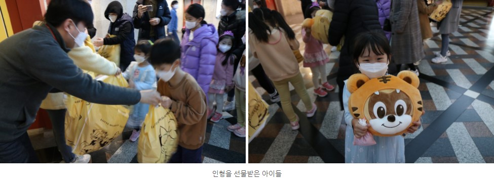 민속박물관 견학과 체험까지 모두 끝나고 롯데월드에서 아이들을 위한 선물을 준비해 주셨는데요. 흑 호랑이해를 맞이하여 귀여운 호랑이 쿠션을 선물해 주셨답니다. 그뿐만 아니라 롯데월드의 꽃인 롯데월드 어드벤쳐에서 어트랙션과 퍼레이드를 마음껏 즐길 수 있도록 자유이용권 티켓을 지원해 주셔서 마지막까지 즐거운 시간을 보낼 수 있었답니다. 아이들에게 잊지 못할 하루를 선사해 주신 롯데월드 관계자분들에게 감사 인사를 드립니다.
