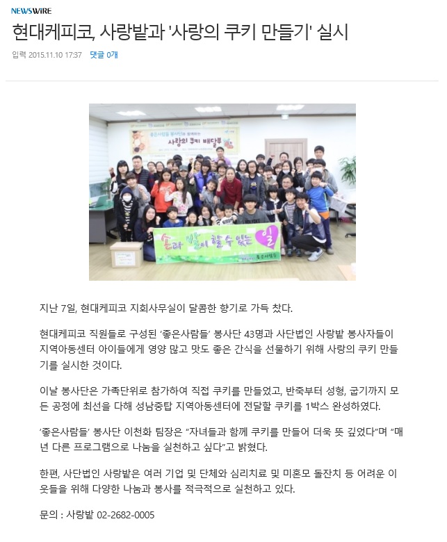 [언론보도] 현대케피코, 사랑밭과 ‘사랑의 쿠키 만들기‘ 실시